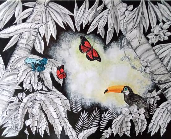 My medium is ink and I enjoy drawing nature scenes, wildlife, and beach landscapes.