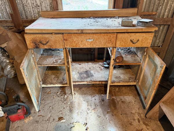 Width: 54, Height: 36, Depth: 24, Metal sink base cabinet removed from farm house being torn down. These were built in the 1940-50’s, Needs restoration, do your research, these are highly sought after in restored condition and easily bring well over $1000. Item is located in Interlachen, Florida 32148, can deliver or meet with 20 miles of 32148. All doors and drawers operational. Can crate and ship at buyers expense. Cash, Venmo, CashApp accepted. Included 2 pic of restored cabinets, not the cabinet for sale!
