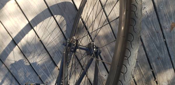 I'm selling my Golden 52cm fixed gear bike with 46:16 gears. Its very lightweight and quick. Its a great street bike. It has front and rear hand brakes and its in great condition. The reason I'm selling it is that I need a more upright positioned bike because of a back injury. Thanks for checking it out.
